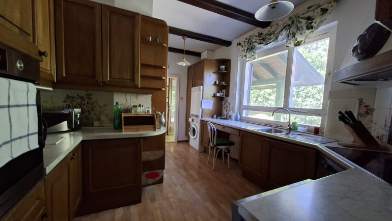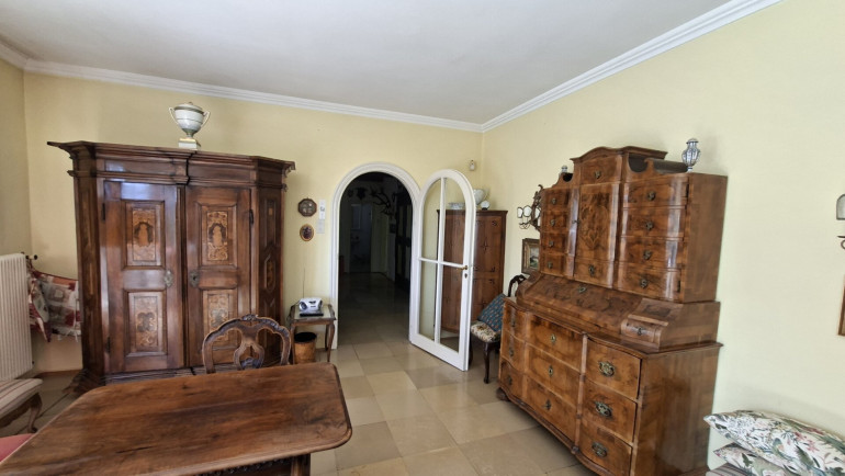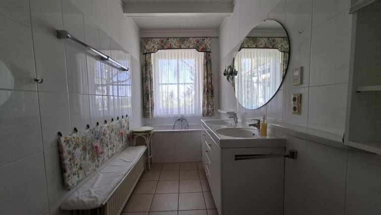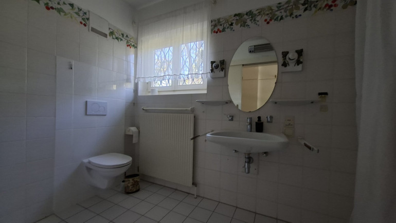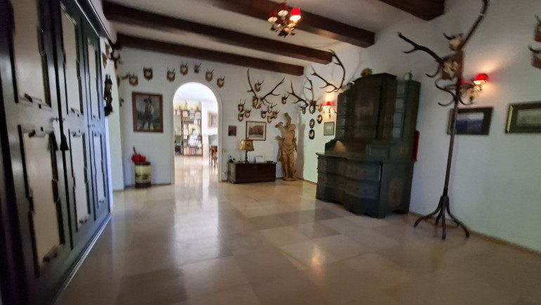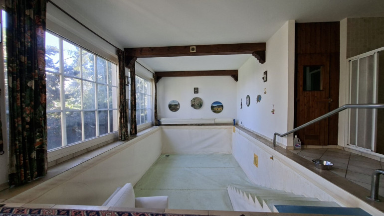 Das ursprünglich im Jahr 1964 errichtete Haus wurde Mitte der 1980er Jahre großzügig erweitert und umfasst heute einen weitläufigen Wohn-/Essbereich, eine Küche, einen Hauswirtschaftsraum, drei Schlafzimmer zwei Badezimmer sowie ein Gäste-WC. Ergänzt wird das Raumangebot durch einen Indoor-Pool mit Sauna, Dusche und Technikraum sowie einen zusätzlichen, großzügigen Wohnbereich im hinteren Teil des Hauses, der sich ideal als Einliegerwohnung, Gästebereich oder Büro nutzen lässt.