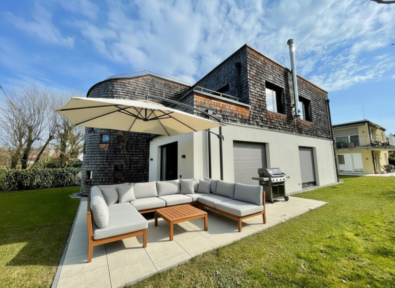 Diese hochwertige Villa (Baujahr 2017) besticht durch seine großzügige Raumaufteilung mit lichtdurchfluteten Zimmern, die Ihnen und Ihrer Familie ausreichend Platz für individuelles Wohnen und Wohlfühlen bieten. Derzeit stehen 4 Zimmer, davon 3 mögliche Schlafzimmer und ein ca. 30m² großes Lager/Büro im Untergeschoss mit Tageslicht zur Verfügung, mit wenig Aufwand ist ein weiteres Schlafzimmer auf der Gartengeschossebene herstellbar. Die hochwertige Ausstattung zeigt sich in den drei modernen Bädern und den drei separaten WCs – perfekt für Komfort und Privatsphäre im Alltag.
