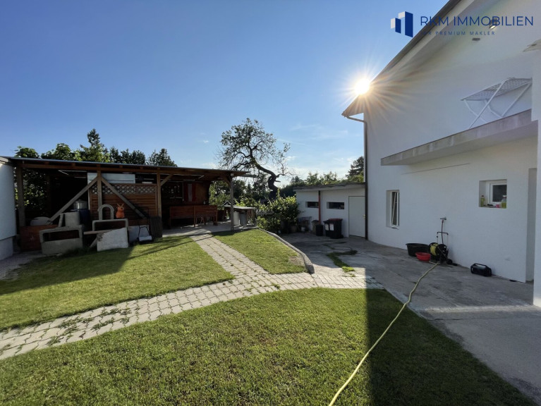 Besonders hervorzuheben ist der großzügige Garten, der Ihnen ausreichend Platz für entspannte Stunden im Freien bietet. Genießen Sie die ruhigen Abende auf Ihrer Westterrasse, während Sie den wunderschönen Grünblick bewundern. Hier können Sie die Natur in vollen Zügen erleben und haben gleichzeitig einen Rückzugsort, der Ihnen Privatsphäre und Erholung bietet.