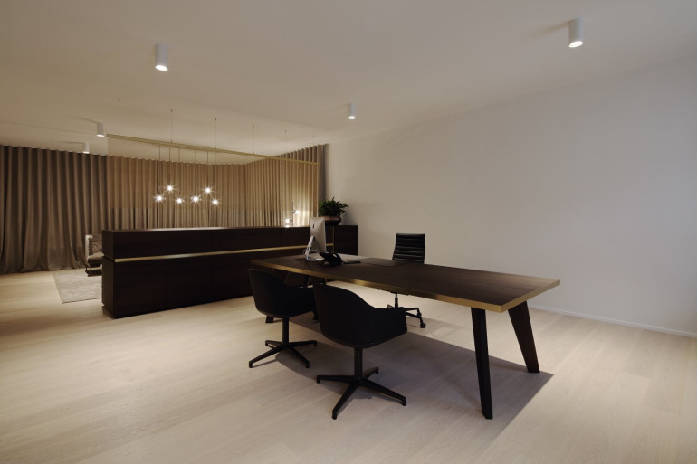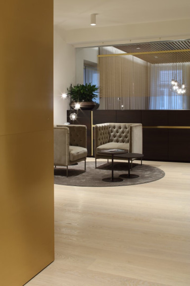 Helle, hohe Räume mit edlen Materialien und fein abgestimmten Farbkonzepten prägen den Charakter dieser Immobilie. Das Herzstück bildet der großzügige Empfangsbereich mit maßgefertigtem Mobiliar und edlen Holzoberflächen – ein Statement für Eleganz und Understatement zugleich.