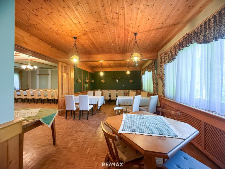 Gasthof, Seminarhaus, Beherbergung, Werkstätten oder Praxisräume mit Wohnanteil. Gastronomischer Betrieb sofort möglich.