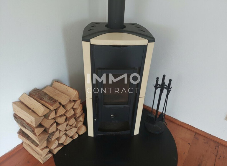 Ein Kaminofen steht für gemütliche Stunden zusätzlich zur zentralen Pelletsheizung zur Verfügung