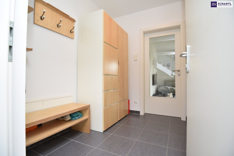 Der offen gestaltete Wohn‑/Essbereich bietet viel Platz zum Entspannen und Wohlfühlen und führt direkt auf die sonnige Terrasse in Richtung Garten, perfekt für gemütliche Stunden im Freien. Das Schlafzimmer sorgt für eine angenehme Rückzugsmöglichkeit. Ein freundlicher Vorraum bietet Platz für Garderobe und Stauraum. Das modern ausgestattete Badezimmer verfügt über Dusche, WC sowie einen Waschmaschinenanschluss und rundet das Raumangebot komfortabel ab.