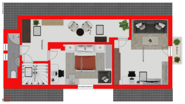 Ein echtes Highlight bildet der sonnige, südseitig ausgerichtete Garten – eine grüne Oase mit hoher Lebensqualität und Privatsphäre. Die großzügige Terrasse direkt vor dem Wohnzimmer sowie die südseitigen Balkone im Ober- und Dachgeschoss unterstreichen die besondere Wohnqualität und schaffen fließende Übergänge zwischen Innen- und Außenraum.