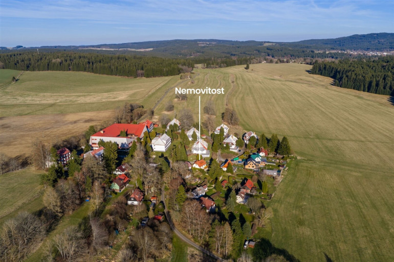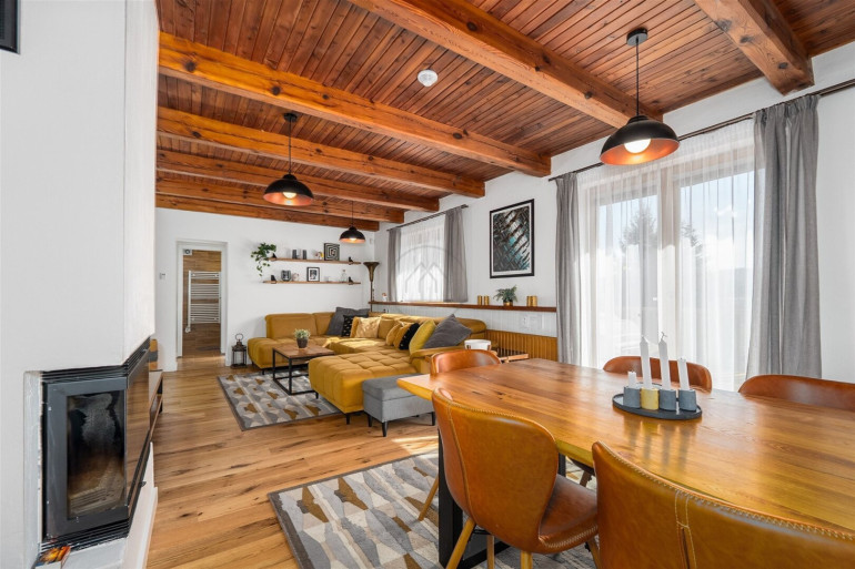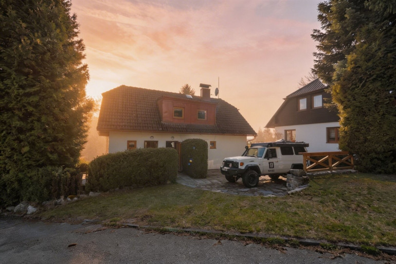 Wir präsentieren ein attraktives Haus mit Terrasse und Garten in der ruhigen Lage von Hrdoňov – Frymburk, nur 300 Meter vom Ufer des Lipno-Stausees entfernt.