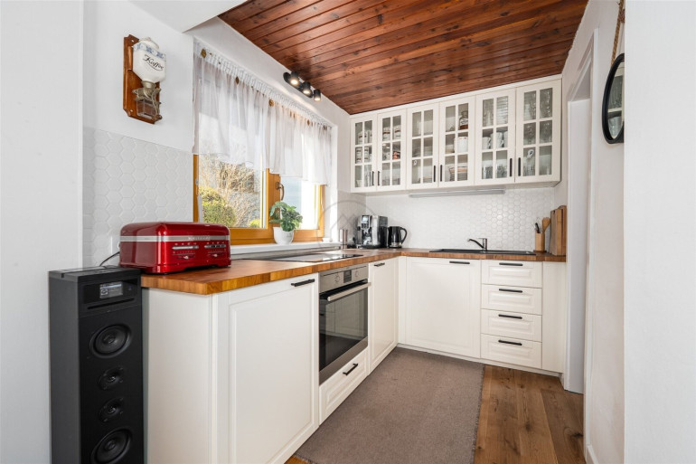Das Haus ist renoviert und befindet sich in einem sehr guten, gepflegten Zustand. Im Preis inbegriffen sind alle Möbel, Ausstattungen und Elektrogeräte, einschließlich einer neuen Küche. Eine Besonderheit sind die großformatigen Fliesen und das Jablotron-Sicherheitssystem. Die Atmosphäre wird durch eine Holzbalkendecke und einen Kamin unterstrichen, der auch in den kälteren Monaten für angenehme Gemütlichkeit sorgt. Die Warmwasserbereitung erfolgt über einen Boiler, die Beheizung über Heizkörper. Der Garten bietet großes Potenzial und kann zu einem idealen Ort für Familienzusammenkünfte werden, wobei der größte Vorteil die fußläufige Entfernung zum Strand ist. Es gibt auch eine private Marina, in der Sie Ihr eigenes Boot platzieren können. Parkmöglichkeiten befinden sich direkt auf dem eigenen Grundstück auf einer befestigten Fläche.