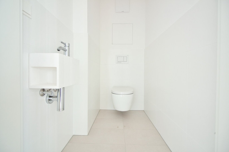 - Badezimmer mit Dusche, WC, Handtuchheizkörper & Waschmaschinenanschluss