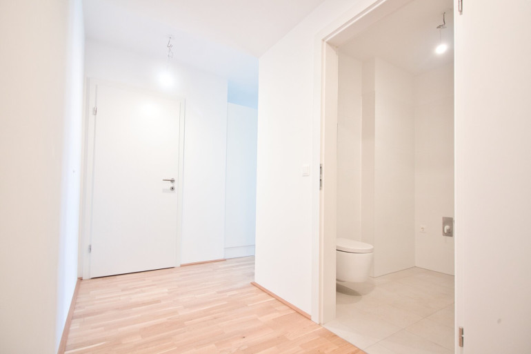 Die Wohnung befindet sich im 2. Liftstock eines modernen Wohnhauses aus dem Jahr 2021. Der großzügige Flur bietet ausreichend Platz zum Ankommen. Gegenüber vom Eingang befindet sich das zeitgemäß ausgestattete Badezimmer mit verglaster Dusche, Waschtisch, Handtuchheizkörper, WC und Waschmaschinenanschluss. Ein Abstellraum sorgt für zusätzlichen Stauraum. Der angrenzende Wohnraum ist hell, freundlich und mit einer modernen L-förmigen Einbauküche ausgestattet. Von hier aus gelangt man auf den ca. 4 m² großen Balkon – ein ruhiger Rückzugsort mit Blick ins begrünte Innenareal. Das Schlafzimmer ist direkt vom Wohnbereich aus begehbar.
