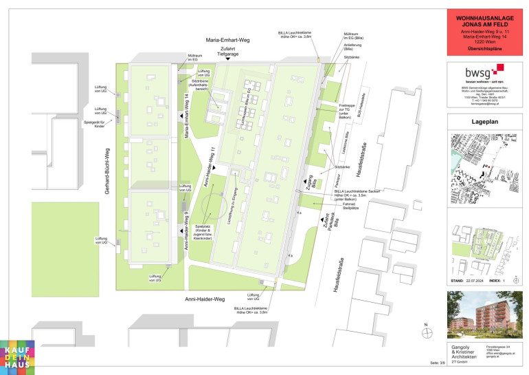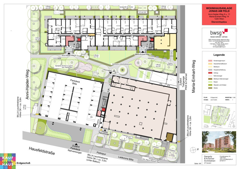 WOHNEN IM JONAS AM FELD - Bauplatz J, Anni-Haider-Weg 9+11; Maria-Emhart-Weg 14, 1220 Wien