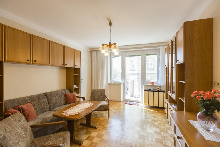 Wohnzimmer mit Zugang zum 1. Balkon, Schlafzimmer mit Zugang zum 2. Balkon, separate Einbauküche mit Essplatz, Vorzimmer,
