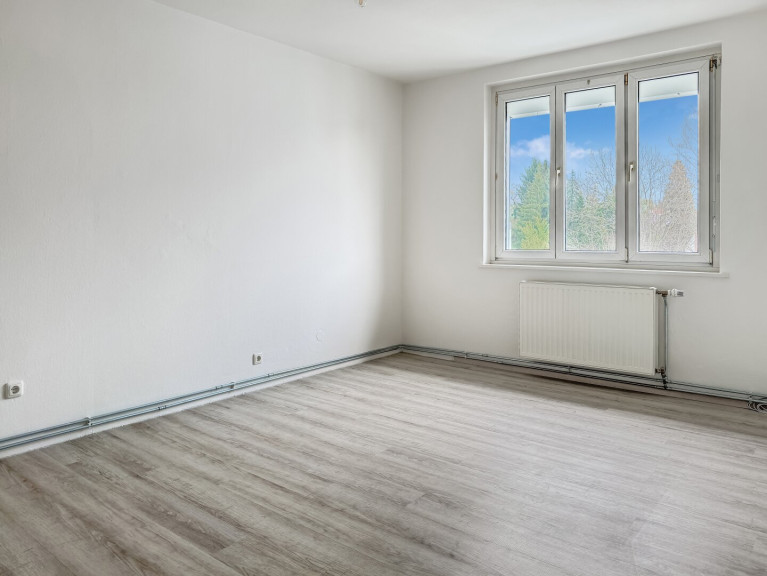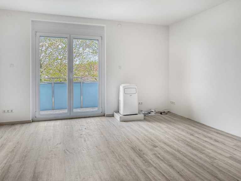 Bereits beim Betreten zeigt sich der stimmige Charakter dieser Wohnung. Helle Räume, eine freundliche Atmosphäre und kluge Details schaffen ein Wohngefühl, das sofort anspricht. Besonders das großzügige Wohnzimmer mit rund 23 m² wird zum Mittelpunkt des Alltags. Hier entsteht Raum für entspannte Abende, gesellige Stunden und individuelle Wohnideen. Von hier aus gelangen Sie direkt auf den überdachten Balkon mit rund 4,2 m², der mit einem herrlichen grünen Ausblick begeistert. Ein Platz, an dem Ruhe einkehrt und jeder Tag entspannt beginnen oder ausklingen darf.