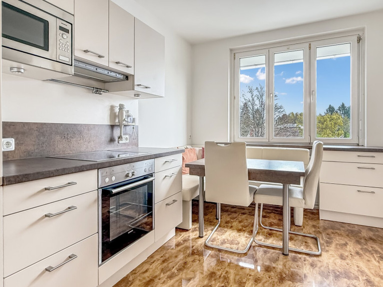 Die Wohnung wurde 2015 umfassend modernisiert und an zeitgemäße Wohnbedürfnisse angepasst. Dabei wurden die Elektrik sowie die Küche, das Badezimmer, das WC und der Abstellraum erneuert. Dadurch präsentiert sich die Immobilie heute in einem gepflegten Zustand und bietet ein sofort angenehmes Wohngefühl. Bereits im Jahr 2000 erfolgte der Austausch der Fenster auf Kunststofffenster mit Doppelverglasung und schuf damit eine solide Basis für Komfort und Energieeffizienz. Die Küche wurde nicht nur erneuert, sondern auch funktional verbessert. Durch eine Anpassung des Grundrisses konnte eine gerade Küchenzeile umgesetzt werden, die den Raum optimal nutzt und eine klare, harmonische Linie schafft.