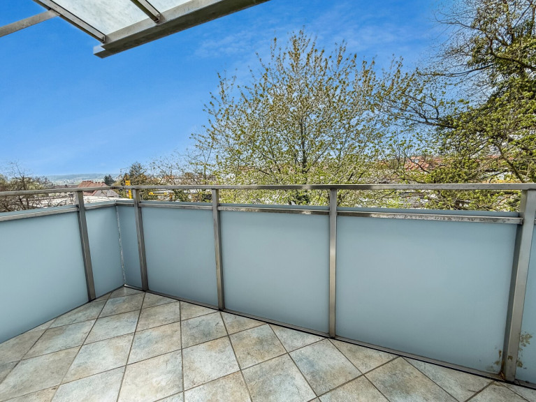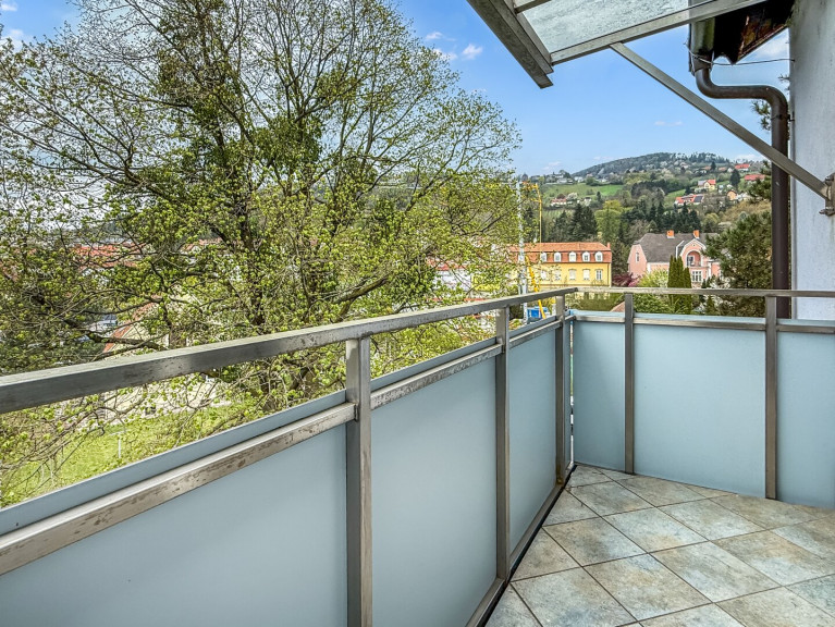 Besonders hervorzuheben ist das helle Wohnzimmer mit rund 23 m², das großzügige Wohnqualität und vielfältige Einrichtungsmöglichkeiten bietet. Von hier aus gelangen Sie direkt auf den überdachten Balkon mit rund 4,2 m², der mit einem angenehmen Blick ins Grüne begeistert und zusätzlichen Freiraum im Alltag schafft. Die Doppelflügeltür zum Balkon sowie die elektrischen Raffstores im Wohnzimmer wurden im Jahr 2016 erneuert und ergänzen den Wohnbereich um zusätzlichen Komfort. Das Balkongeländer aus Edelstahl wurde 2017 modernisiert und rundet den gepflegten Gesamteindruck dieser Immobilie stilvoll ab.