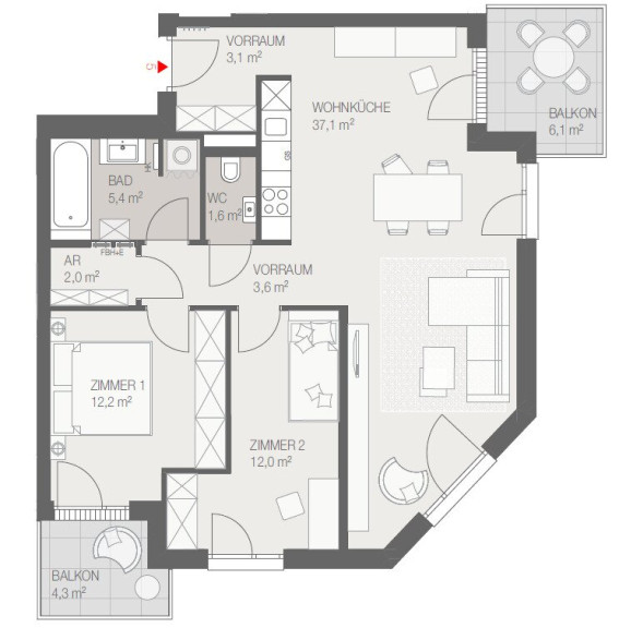 - 3–4 Zimmer-Wohnungen von 63-89 m² – alle mit großzügigen Freiflächen wie Terrassen oder Balkonen