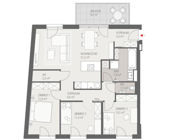 - 3–4 Zimmer-Wohnungen von 63-89 m² – alle mit großzügigen Freiflächen wie Terrassen oder Balkonen
