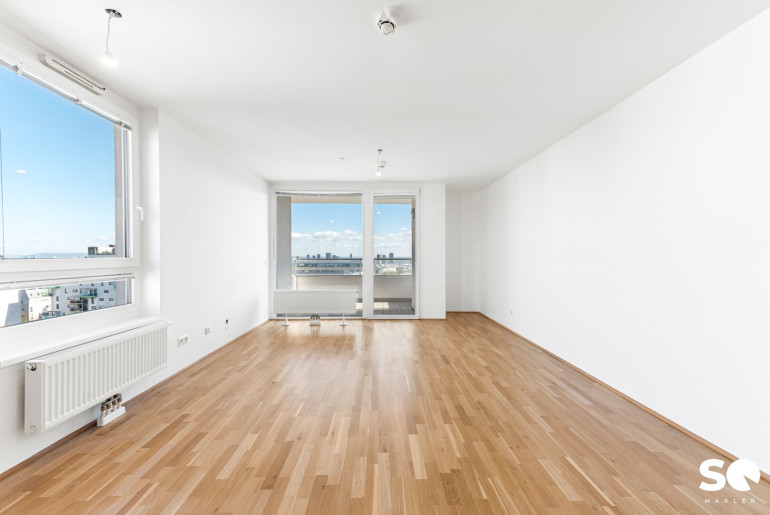 Diese lichtdurchflutete 3-Zimmer-Wohnung im 9. Obergeschoß vereint urbanes Wohnen mit einem außergewöhnlichen Lebensgefühl: Weitblick und modernes Design – mitten in Wien.