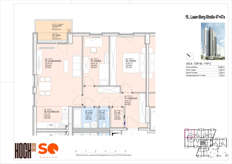 - Wohnfläche: ca. 76,96m² zzgl. Loggia mit ca. 2,43m²
