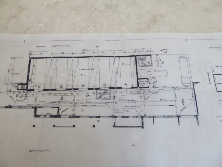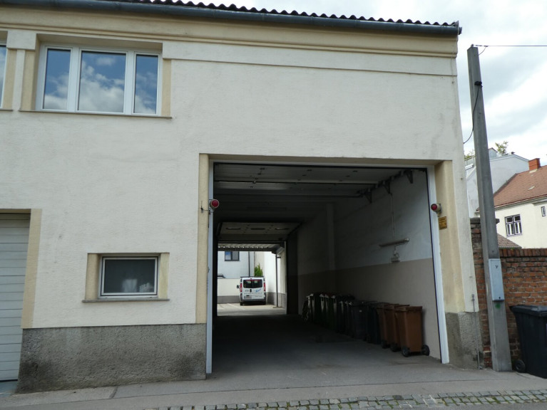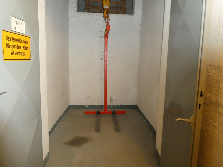 LAGERFLÄCHE IM KELLER MIT PALETTENLIFT, die Lagerfläche befindet sich im Innenhof einer Gewerbeliegenschaft in Korneuburg