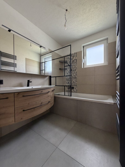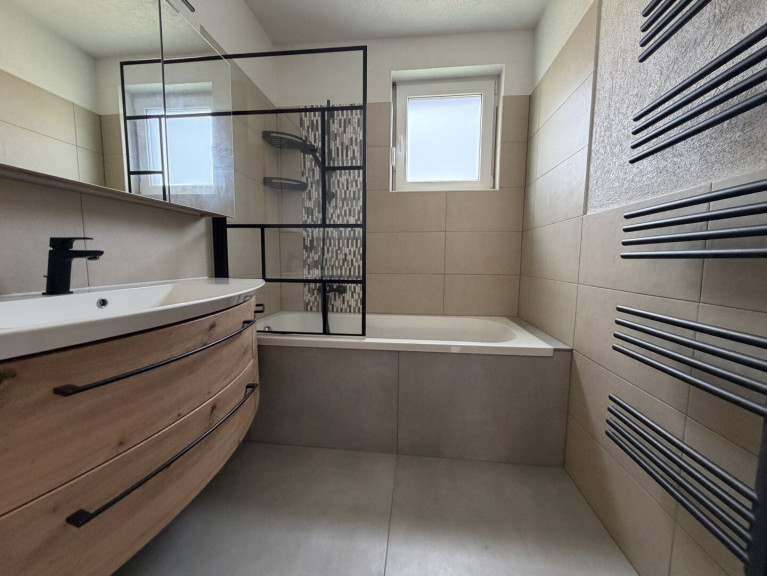 - Badezimmer mit Badewanne und Fenster