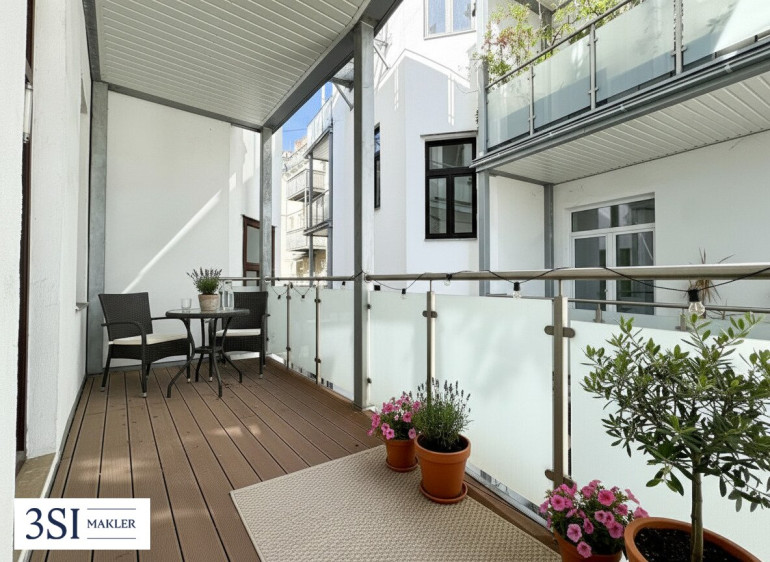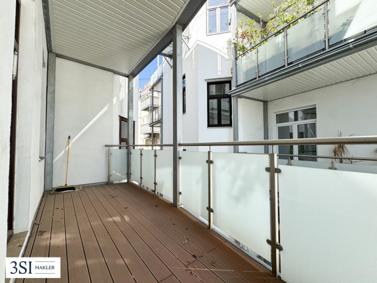 Besonders schön: der hofseitige Balkon. Hier können Sie morgens Ihren Kaffee in der Sonne genießen, den Feierabend entspannt ausklingen lassen oder einfach frische Luft und Ruhe genießen – ein echter Wohlfühlort mitten in der Stadt.