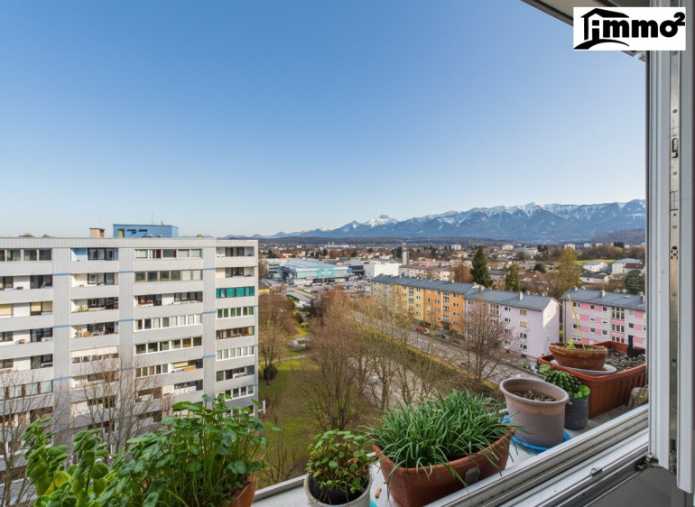 - Besonderheiten: Loggia mit traumhafter Aussicht über Villach und auf die Karawanken, 9. Stock mit Lift, Badezimmer mit Wanne & Dusche, separates WC, Abstellraum, großzügiger Vorraum