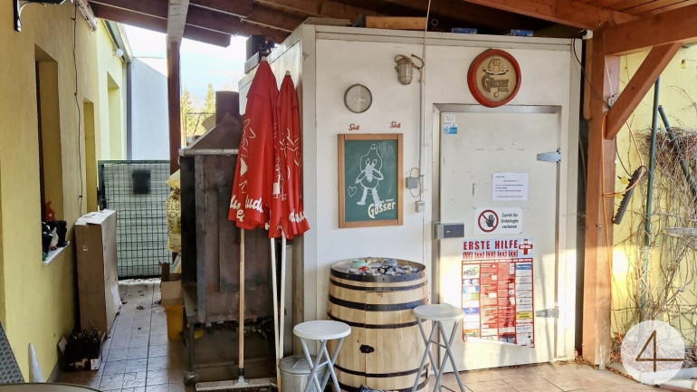 Das komplett ausgestattete Lokal bietet ca. 25 Sitzplätze im Innenbereich und ca. 25 Sitzplätz im Gastgarten, 5 Parkplätze