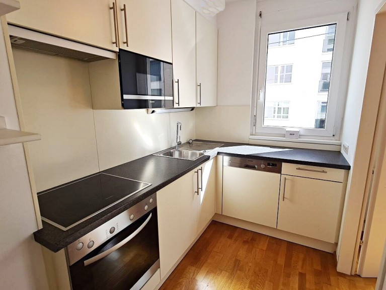 Parkett, Fliesen, Gas, Zentralheizung, Einbauküche, Wohnküche / offene Küche, Personenaufzug, Nordbalkon, Badewanne, Dusche, Kabel/Satelliten-TV