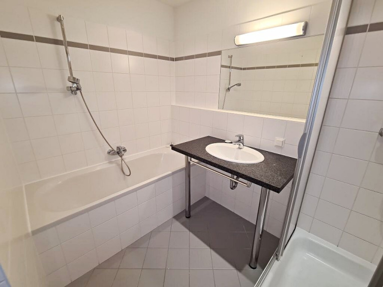 + Badezimmer mit Badewanne, Dusche und Waschtisch