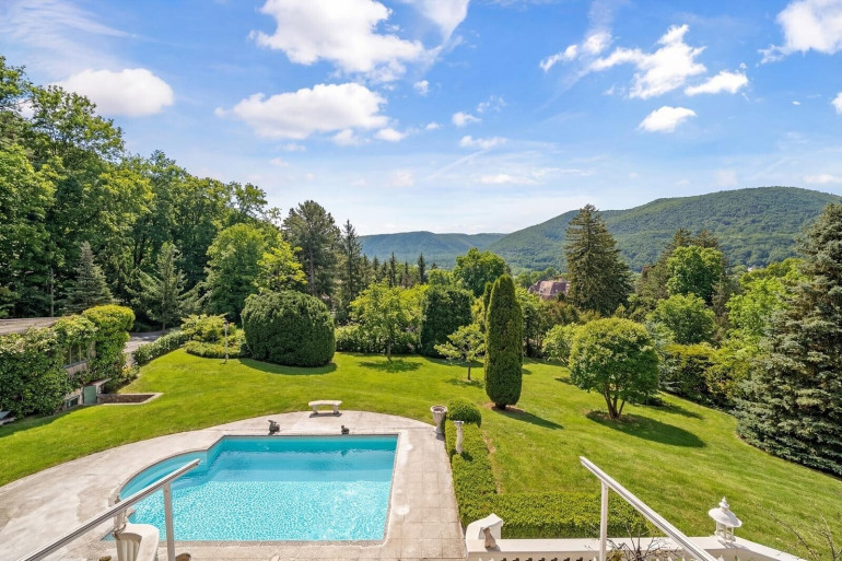 Von den Wohnzimmern gelangen Sie auf eine überaus großzügige Sonnenterrasse mit Zugang zum einladenden, gepflegten Outdoor-Pool.