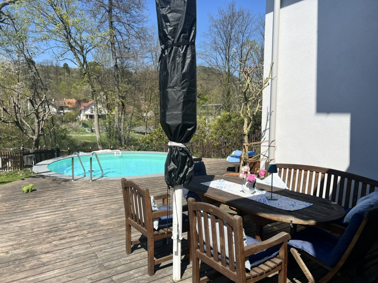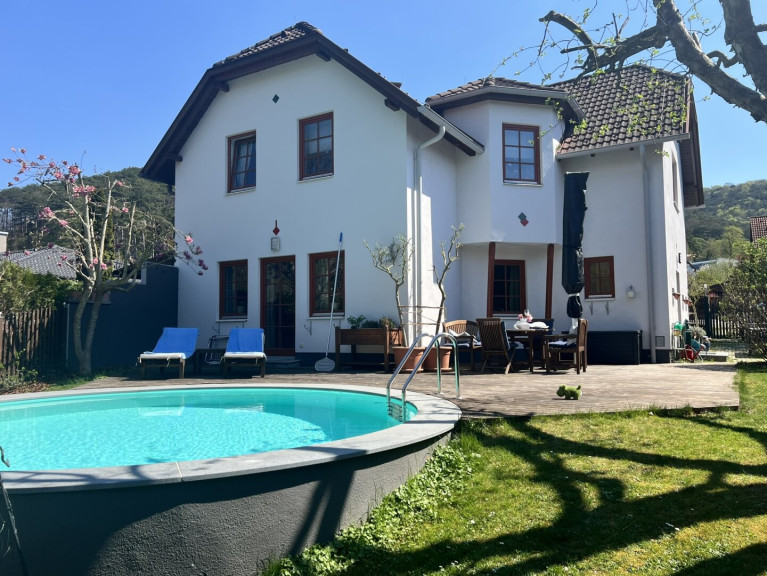 Zum Verkauf kommt eine gepflegte Doppelhaushälfte mit Garten, Pool und 2 PKW-Stellplätzen in zentraler Lage in Gaaden im Wienerwald.