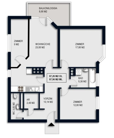 | Wohnfläche: | 87,26 m² |