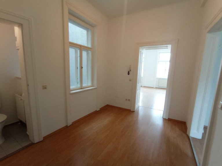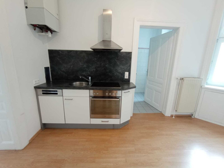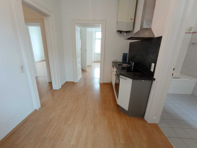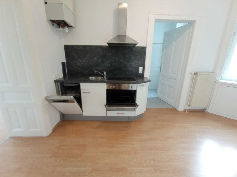 Die Wohnung liegt im 4. Stock (mit Lift) und besteht aus zwei getrennt begehbaren Zimmern, einer eingerichteten Kochnische , einem Bad mit Wanne, Waschbecken, und einer separaten Toilette, sowie einem zentralen Vorraum. Der WM-Anschluss befindet sich im Badezimmer.