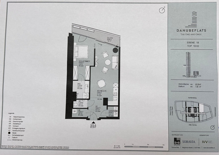 Das Danube Flats ist das höchste Wohngebäude Österreichs mit einer Höhe von 180 Metern (48 Stockwerke). Es liegt direkt an der Neuen Donau im Viertel D-City. Das Projekt wurde von den renommierten Architekten A01 Architects und dem Designstudio LABVERT entworfen und gilt als architektonisches Meisterwerk. Vorteile des Gebäudes: Ganzjährig beheizter Pool Spa-Bereich mit Sauna und Umkleidekabinen Moderner Fitnessraum mit neuesten Geräten Spezieller Yoga-Raum Cocktailbar für Entspannung und Treffen Business-Lounge für Meetings und Arbeit Einzigartige Lage – im Herzen der D-City Das Gebäude befindet sich in der prestigeträchtigen D-City, die eine internationale Atmosphäre, eine ausgezeichnete Infrastruktur und die Nähe zur Natur vereint. Verkehrsanbindung: U-Bahnstation U1 direkt am Gebäude Ins Wiener Stadtzentrum: 10 Minuten mit der U-Bahn oder 12 Minuten mit dem Auto Zum Flughafen Schwechat: 35 Minuten mit öffentlichen Verkehrsmitteln oder 18 Minuten mit dem Auto Infrastruktur in der Nähe: UNO-City, DC Tower, Austria Center Vienna Einkaufszentrum Donauzentrum (7 Minuten mit der U-Bahn) Restaurants und Cafés in Gehweite Zweisprachiger Kindergarten, Volksschule und Gymnasium in der Nähe Erholungsgebiete: Donauinsel, Donaupark, Alte Donau – ideal für Spaziergänge, Sport und Wassersportaktivitäten. Zudem gibt es direkten Zugang zu Badebereichen an der Donau.