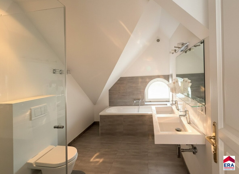 Das Haus wurde mit viel Liebe zum Detail komplett saniert und präsentiert sich in einem modernen, gepflegten Zustand. Die durchdachte Raumaufteilung sorgt für eine optimale Nutzung der Wohnfläche und bietet Ihnen ein angenehmes Wohnambiente. Die große Küche im EG ist komplett mit hochwertigen Geräten ausgestattet und bietet sehr viel Stauraum. Das Esszimmer ist halboffen zur Küche und das anschließende Wohnzimmer ist mit einem Schwedenofen ausgestattet, der im Winter für eine angenehme Atmosphäre sorgt. Im Obergeschoss befinden sich zwei große, geräumige Schlafzimmer und ein Kabinett, die mit genügend Stauraum ausgestattet sind. Das Bad ist mit einem Doppelwaschbecken, einer bodengleichen Dusche, einer Badewanne und einem WC ausgestattet. Sämtliche Nassräume, der Vorraum und der Technikraum sind mit hochwertigen Fliesen ausgestattet, in den Wohnräumen wurde ein hochwertiger Vollholz-Eichenparkett mit Fischgrätmuster verlegt.