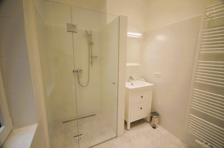 Das Badezimmer verfügt über ein Fenster, ist dadurch angenehm hell und gut belüftet und zusätzlich mit einem Handtuchtrockner ausgestattet.