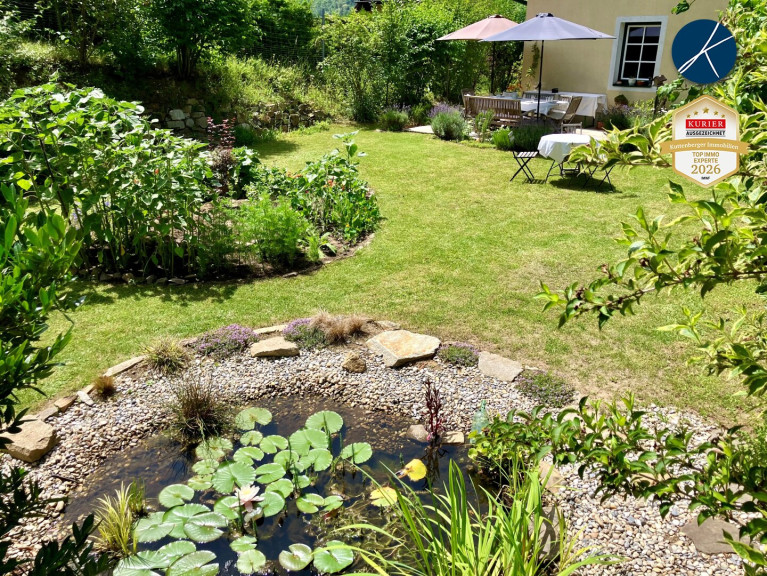 Das Haus besticht durch seinen wunderschönen, terrassenförmig angelegten Naturgarten mit einem Biotop und Obstbäumen (Marille, Apfel, Birne, Pfirsich, Nektarine und Kirsche). Die verschiedenen Ebenen schaffen eine besondere Atmosphäre und bieten zahlreiche Rückzugsorte. Von den Terrassen in Ost- und Westausrichtung genießen Sie sowohl die Morgensonne als auch stimmungsvolle Abendstunden mit herrlichem Ausblick. Ergänzt wird das Angebot durch weitere Nutzungsmöglichkeiten im Außenbereich, darunter ein Hühnerstall.