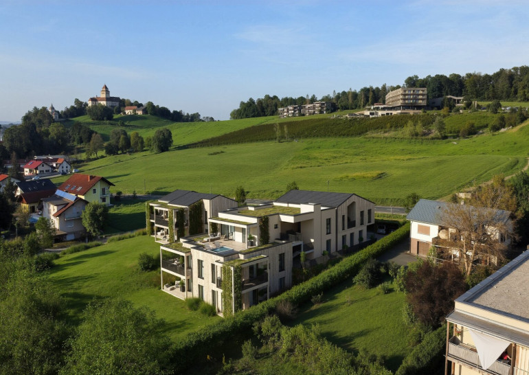 Vollkommen harmonisch und liebevoll wurde diese Wohnanlage bis ins kleinste Detail geplant und durchdacht, wodurch eine stimmiges Gesamtbild entsteht. Auch ringsum wird eine herrliche grüne Oase erschaffen, so werden beispielsweise die Dachflächen inklusive der Carportdächer extensiv begrünt und Teile der Fassade intensiv, um das natürliche Ambiente zu unterstreichen.