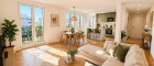 Großzügiges Wohnzimmer mit bodentiefen Fenstern, die viel Tageslicht bringen und einen wunderbaren Stadtblick bieten. Die offene Wohnküche schafft ein harmonisches Wohngefühl und verbindet Kochen, Essen und Entspannen.