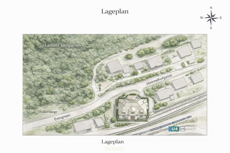 Die Villa befindet sich in begehrter, ruhiger Wohnlage im 13. Bezirk Hietzing – einer der exklusivsten und grünsten Gegenden Wiens. Die Umgebung ist geprägt von eleganten Villen, viel Privatsphäre sowie der unmittelbaren Nähe zum Wienerwald und Lainzer Tiergarten – ideal für Erholung und Freizeit im Grünen. Gleichzeitig profitieren Sie von einer sehr guten Infrastruktur mit Einkaufsmöglichkeiten, Schulen und medizinischer Versorgung in der Nähe. Die Lage überzeugt besonders durch ihre hervorragende Erreichbarkeit und optimale Anbindung in alle Teile der Stadt. Die U4-Station Hütteldorf ist als zusätzliche öffentliche Verkehrsanbindung in kurzer Distanz erreichbar. Die Lage vereint naturnahes Wohnen, urbanen Komfort und einen schönen Fernblick.