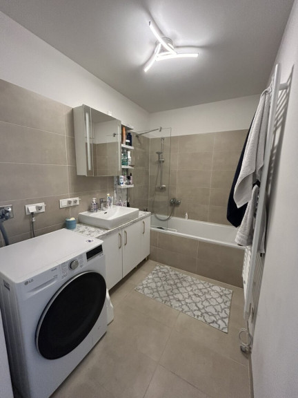 - Badezimmer mit Badewanne, Waschmaschinenanschluss & Handtuchheizkörper