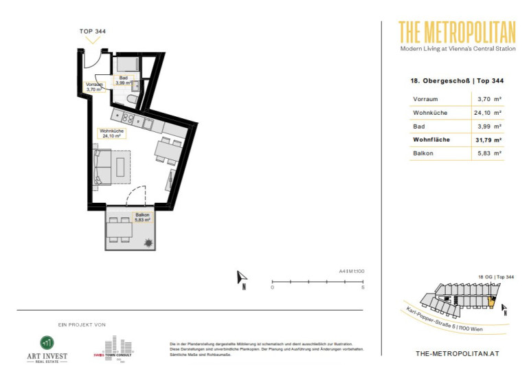 Die neue Skyline am Wiener Hauptbahnhof wächst: Der eindrucksvolle Skyscraper The Metropolitan erweitert den Horizont des modernen Quartiers Belvedere und des Sonnwendviertels und eröffnet eine neue Dimension urbanen Wohnens. In bester Wiener Citylage bietet der von Delugan Meissl Associated Architects geplante 60 Meter hohe Tower smarte Wohnraumlösungen für Glückssucher, Freigeister und Überflieger. Mit Ausstattungsdetails, die das Wohnen so angenehm wie möglich gestalten. Sie haben die Wahl zwischen Studio, Apartment oder Suite.