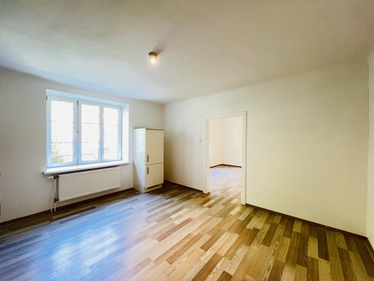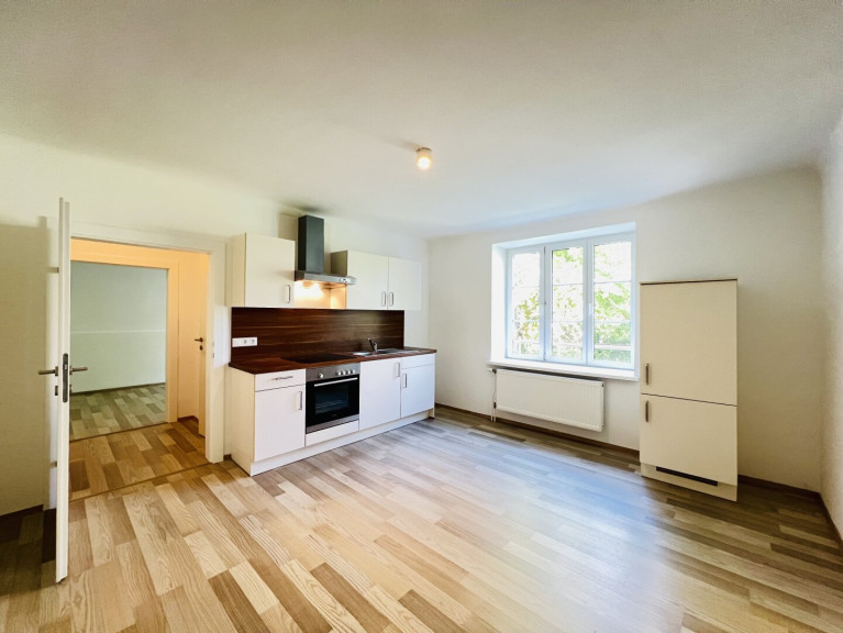 Die Wohnung gliedert sich in: Vorzimmer, Wohn. - Essküche, zwei getrennt begehbare Schlafzimmer, Fliesenbad mit Tageslichtfenster und WC