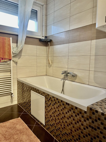 Fliesen, Kunststoffboden, Zentralheizung, Fernwärme, Einbauküche, Personenaufzug, Westbalkon, Bad mit Fenster, Badewanne, Kabel/Satelliten-TV