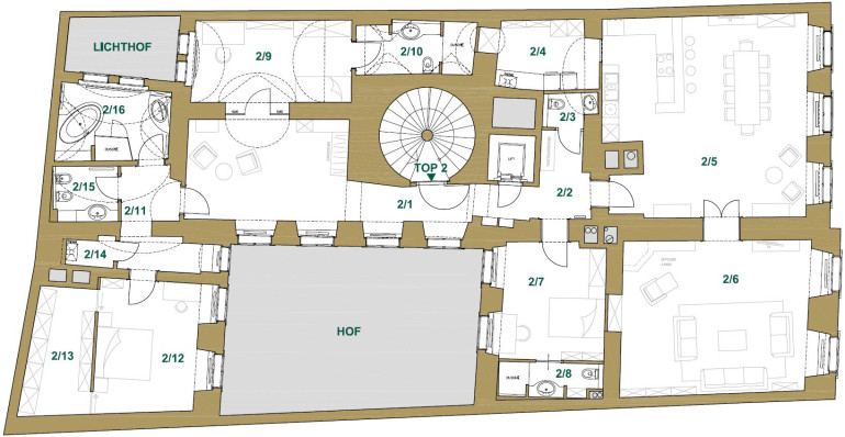 Höchste Privatsphäre: Der Zugang erfolgt diskret entweder über das Stiegenhaus oder direkt mit dem Aufzug, der Sie unmittelbar in Ihre privaten Räumlichkeiten führt.