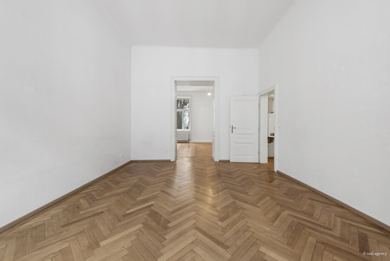 Ein sehr schöner Fischgrätparkett, die Flügeltüren, die komplette Küche sowie ein großzügiges Badezimmer sind die Highlights für dieses geschmackvolle Zuhause.