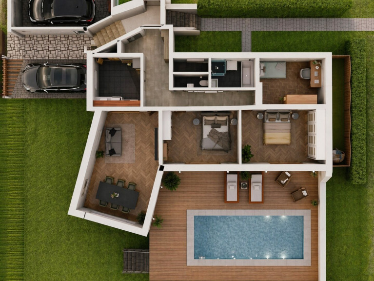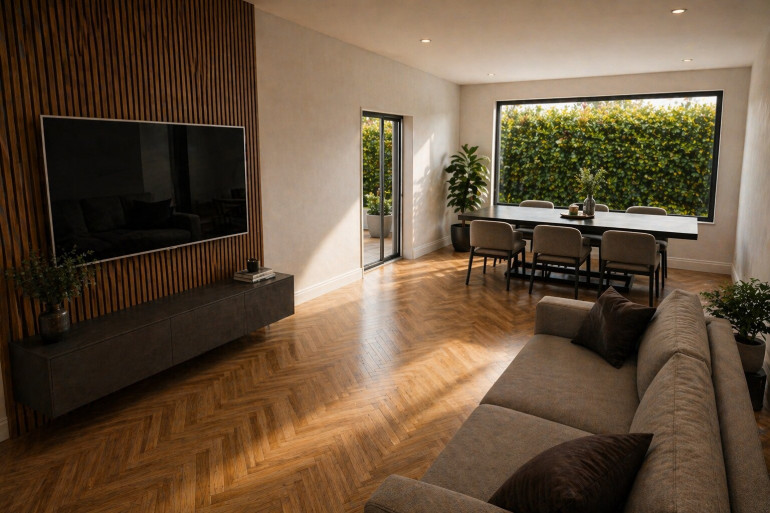 Die Villa bietet rund 115 m² Wohnfläche im Erdgeschoss und überzeugt durch ein durchdachtes Raumkonzept, moderne Ausstattung und zeitlose Eleganz. Sie können ohne weiteren Aufwand einziehen und sofort genießen.