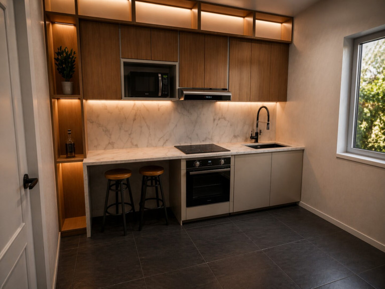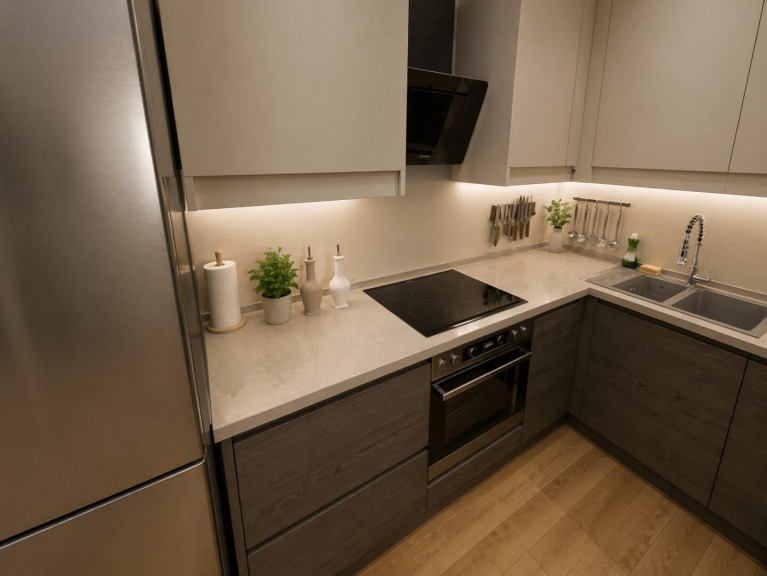 - Offen gestaltete Wohnküche mit Platz für einen Essbereich