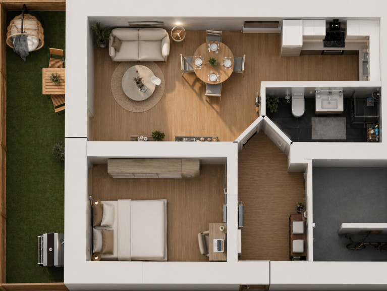- Ideal als Gästebereich, Kinderzimmer oder zur Vermietung – vielseitige Nutzungsmöglichkeiten.