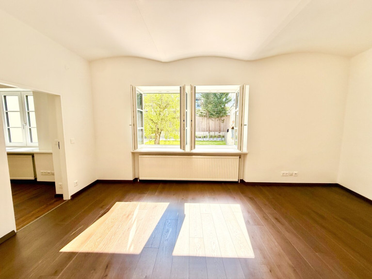 Die stilvolle Liegenschaft aus dem Jahr 1876 wurde umfassend saniert und verbindet auf einzigartige Weise historischen Charakter mit modernem Wohnkomfort. Hohe Räume (über 3,60 m), großzügige Flächen und der direkte Zugang ins Grüne schaffen ein Wohngefühl, das in dieser Form nur selten zu finden ist.