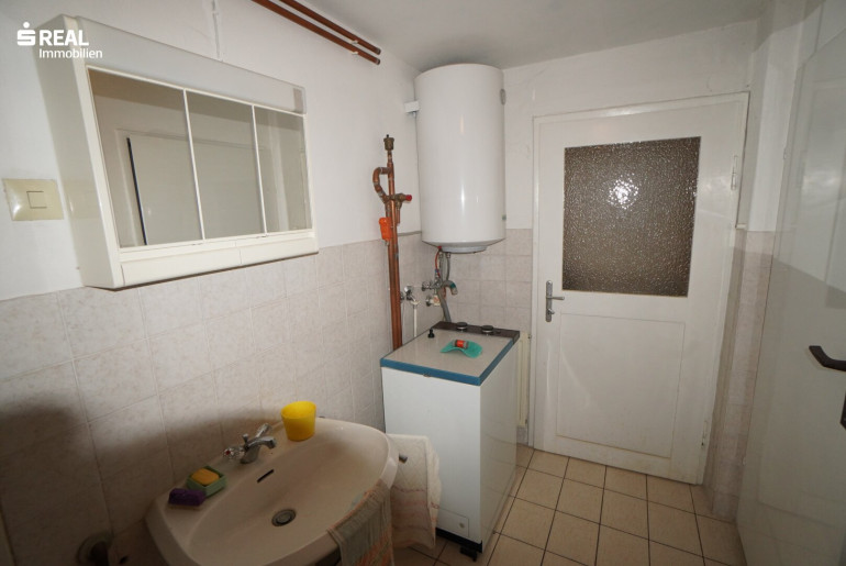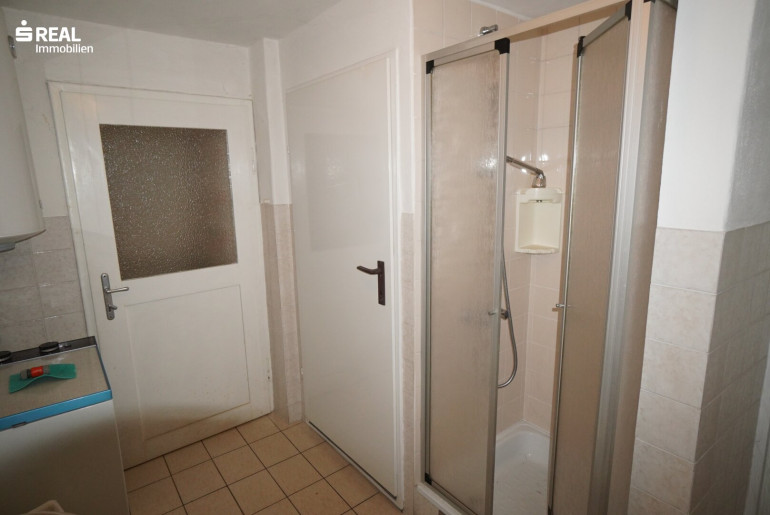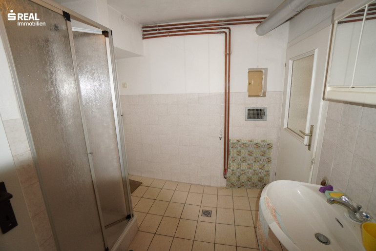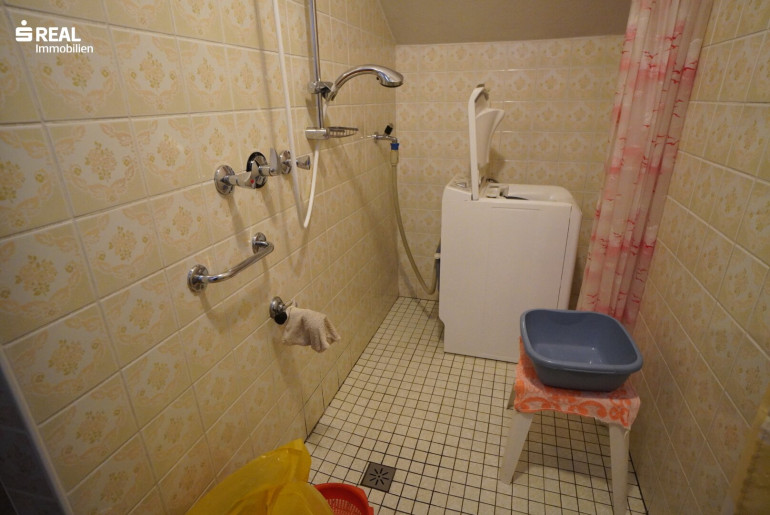- Badezimmer mit Dusche und Waschmaschinenanschluss